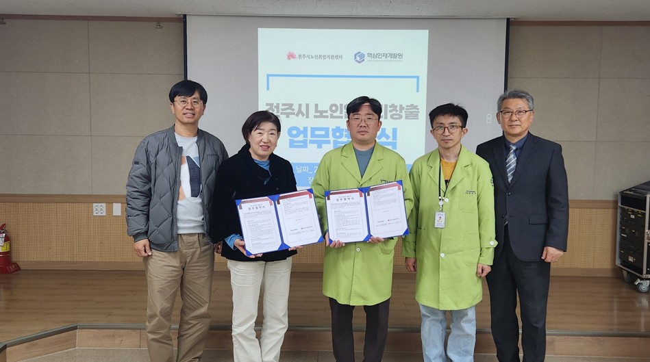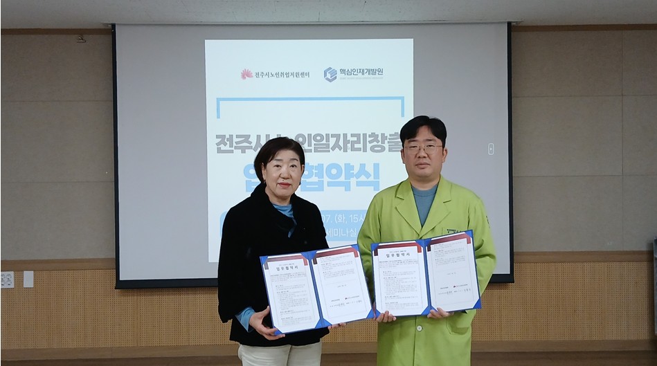 3. 내용 : 전주시노인취업지원센터와 핵심인재개발원은 상호교류를 통하여 전주시 노인에게 보다 많은 일자리를 제공하는 협력체제를 수립하는 업무협약식을 체결했다