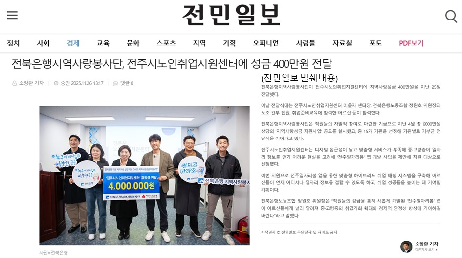 전북은행- 전주시노인취업센터에 성금 전달 |
