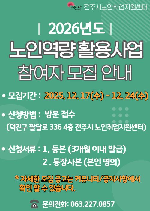 전주시노인취업지원센터 2025년 2제2차 추가경정예산 공고..
