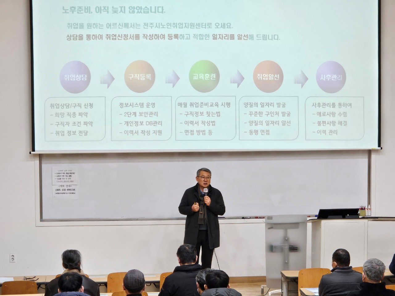 어르신들의 취업을 지원하고자 찾아가는 홍보 활동.